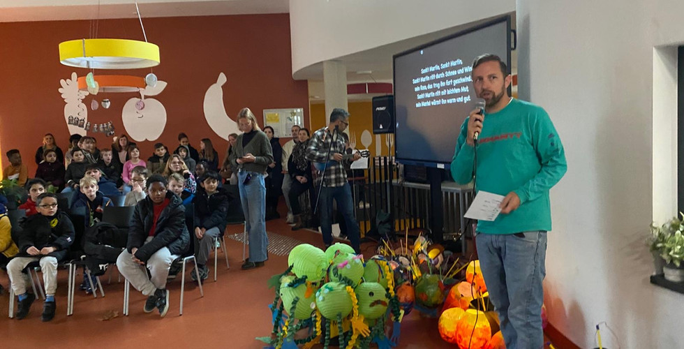 Am Montag fand an unserer Schule die St.-Martinsfeier mit allen Unterstufenklassen statt. Nach einem fröhlichen Martinszug, bei dem viele bunte und liebevoll gestaltete Laternen leuchteten, trafen sich alle in der Aula zu einer gemeinsamen Feier. Dort wurden bekannte Martinslieder gesungen und ein kurzes Theaterstück über die Geschichte des heiligen Martin aufgeführt. In jeder Klasse wurden die drei schönsten Laternen ausgewählt und mit viel Applaus geehrt. Zum Abschluss durften sich alle über leckere Weckmänner freuen!